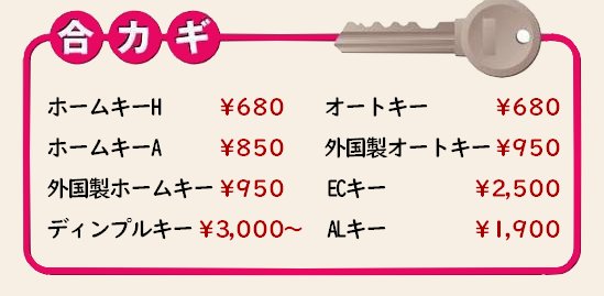 (※注意 作製可能な鍵が限定されます)